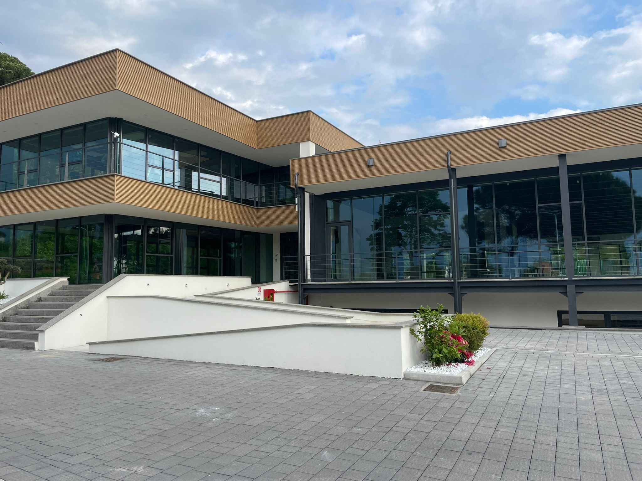 Se c’è un tratto caratteristico del nuovo edificio, è sicuramente la presenza della luce naturale. I 400 mq di vetrate che corrono lungo tutto il perimetro consentono di beneficiare (sia dal punto di vista energetico che di benessere e bellezza) di luce naturale. L’edificio è circondato da boschi, uliveti e tanto spazio verde; elementi che contribuiscono a rendere questo luogo particolarmente suggestivo e che ben riflette i valori dell’azienda.