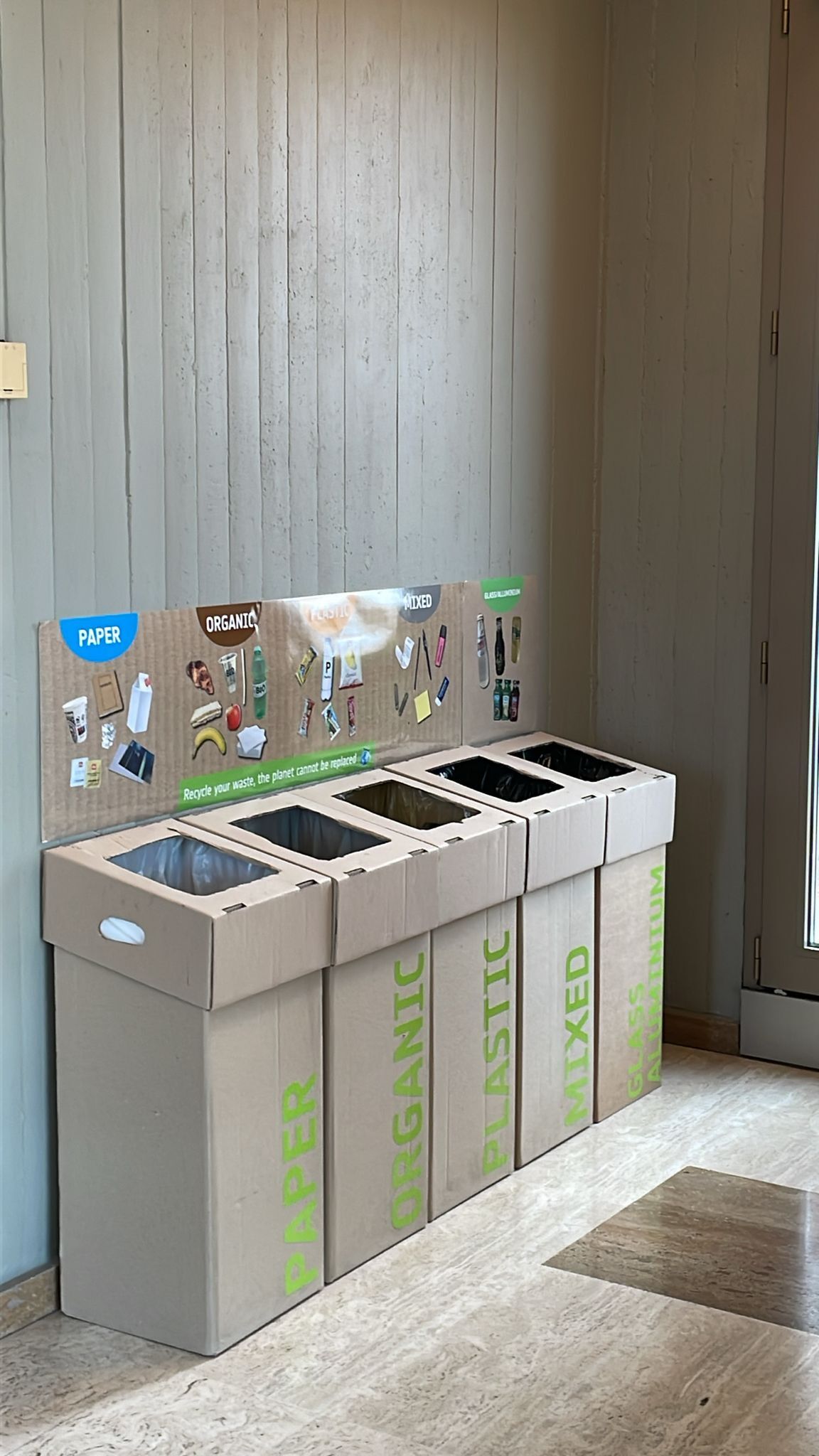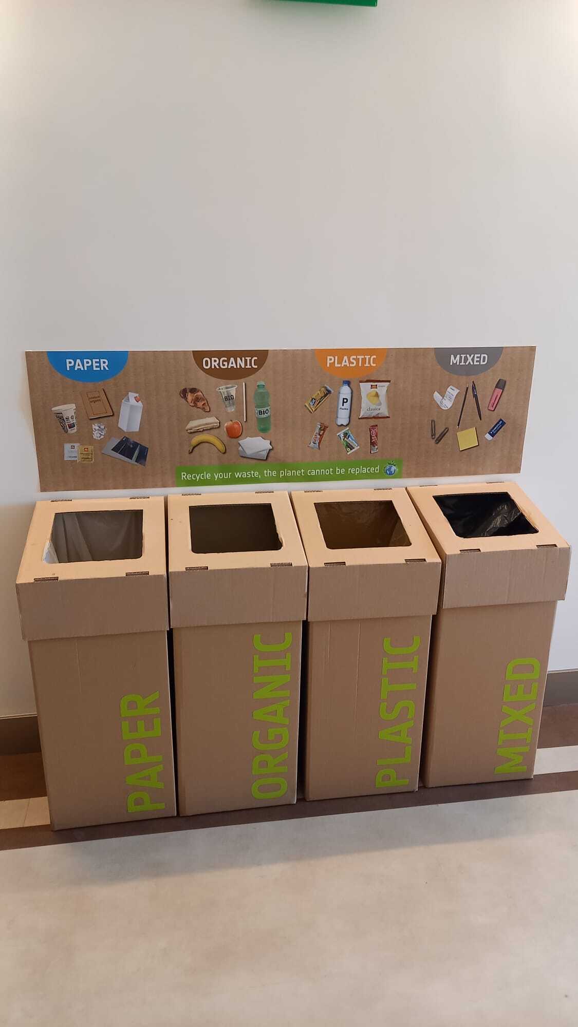 Un esempio recente è dato dalle attività svolte per conto dell’Agenzia Spaziale Europea (ESA). Nel caso in oggetto, la richiesta del cliente di rimuovere i cestini presenti in ogni ufficio è stata soddisfatta mediante la predisposizione di centri unici di raccolta posizionati in punti strategici del sito. Ciascun centro è stato dotato di cestini realizzati in cartone riciclato corredati da stampe diverse per ogni tipologia di rifiuto e realizzate con prodotti naturali.